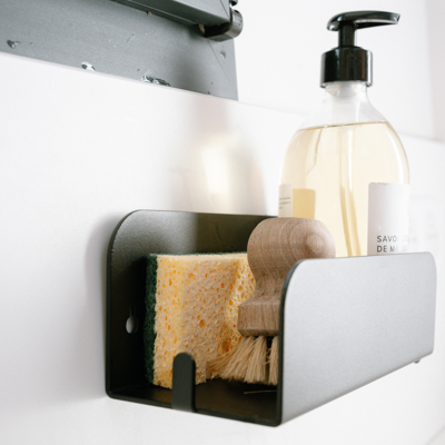 Grande étagère de cuisine mural - cache éponge - Noir